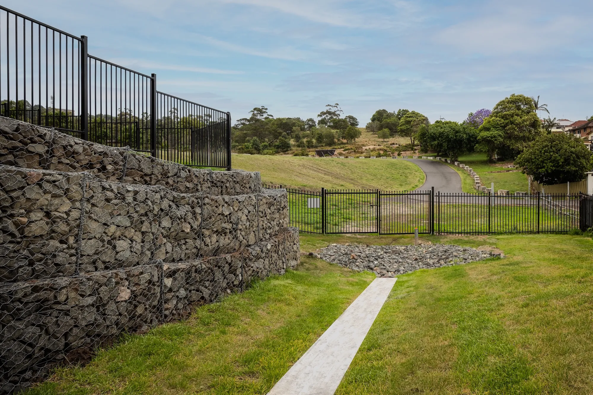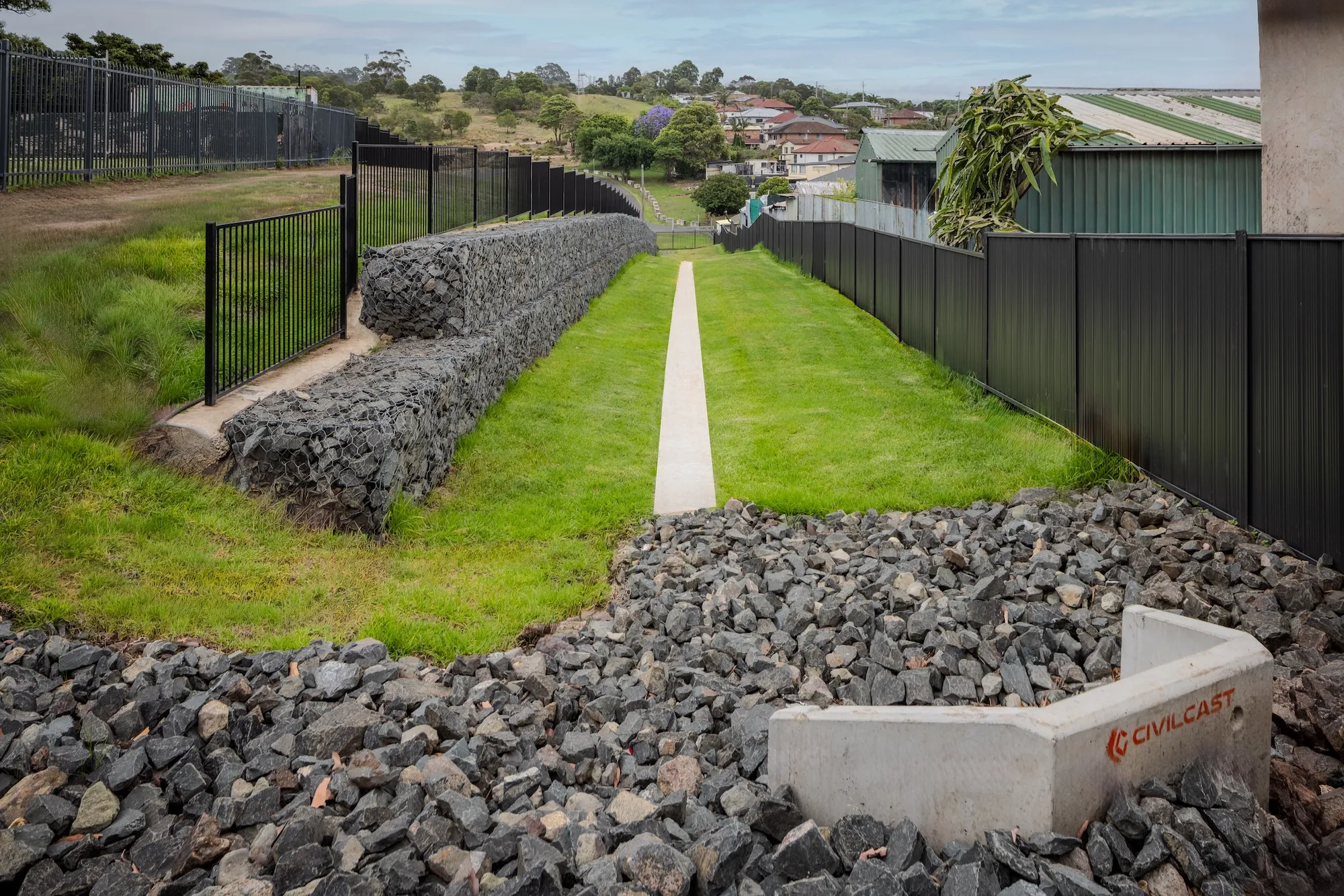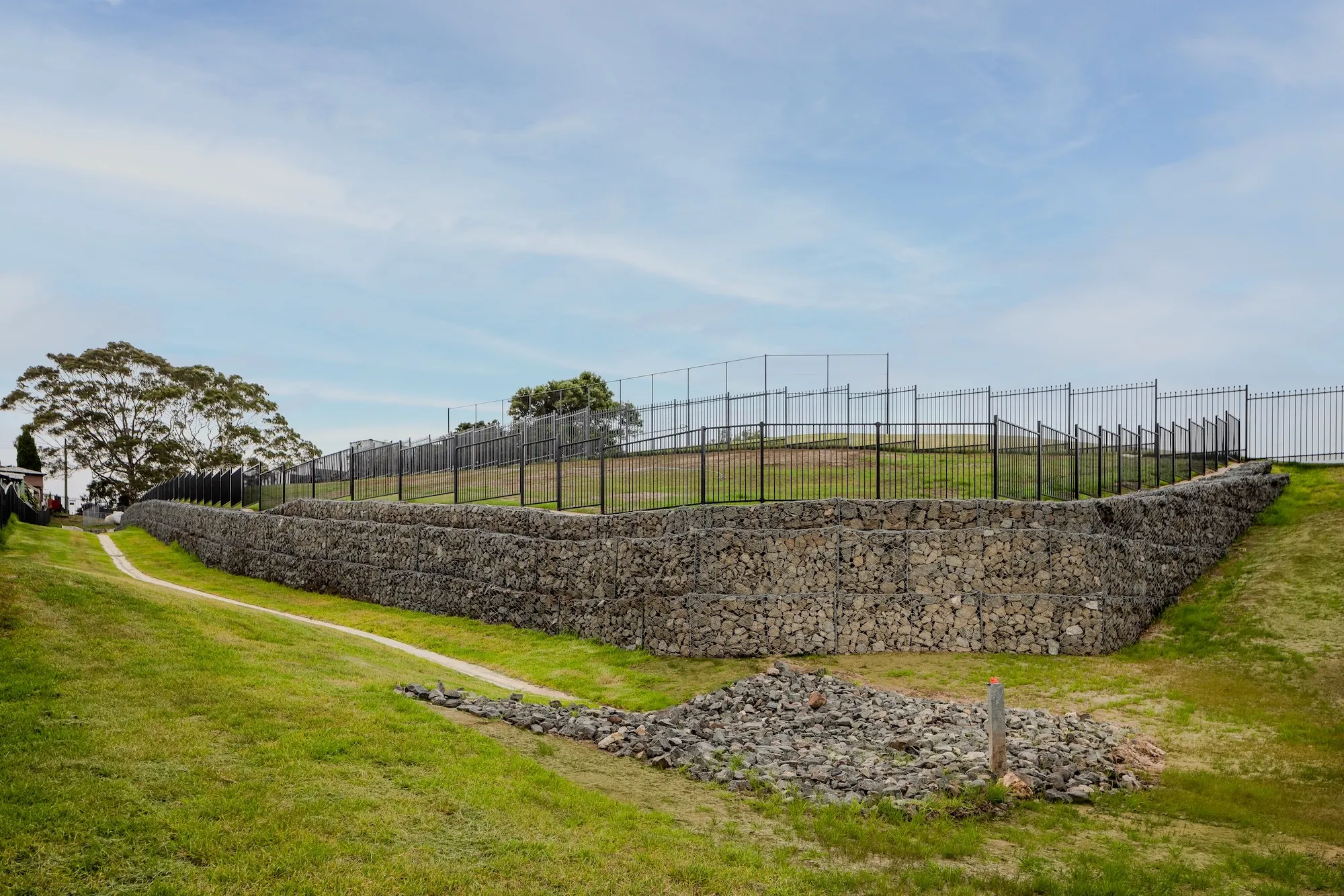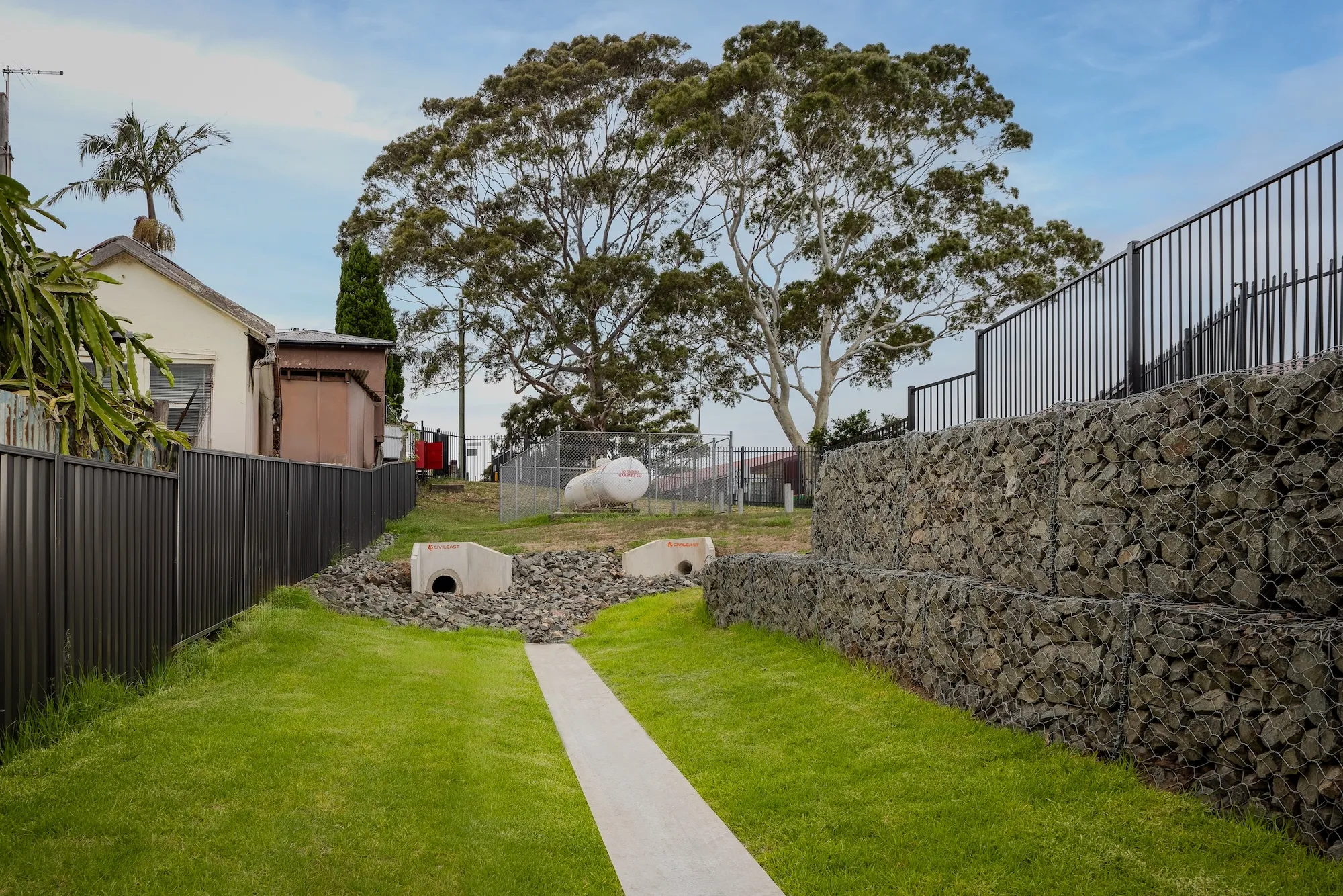 The project also involved the construction of structural gabion walls and extensive stormwater upgrades to deliver a new open space area for Cringila Public School.