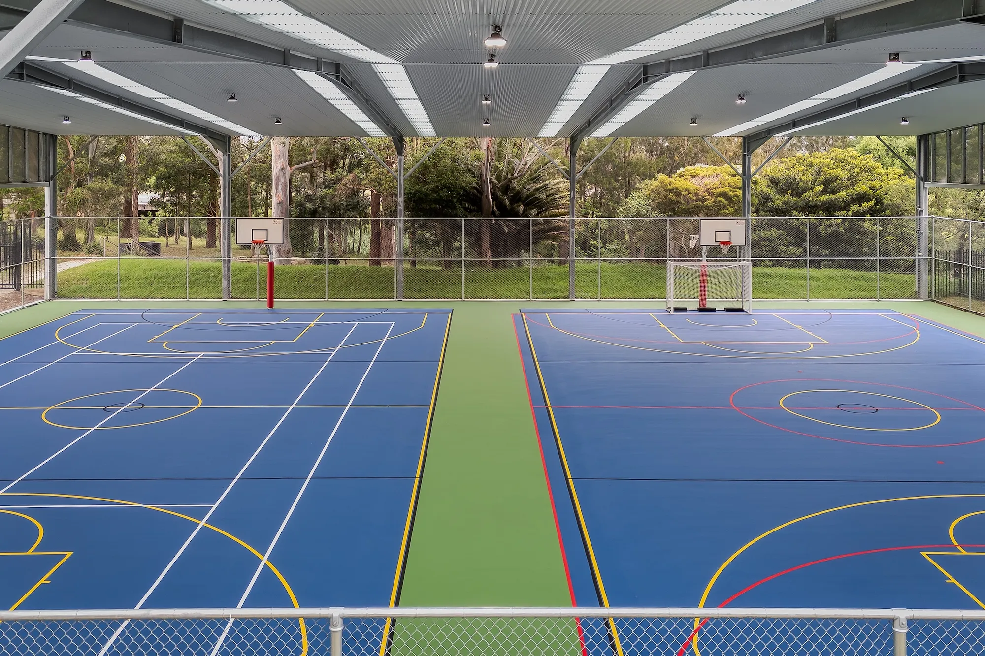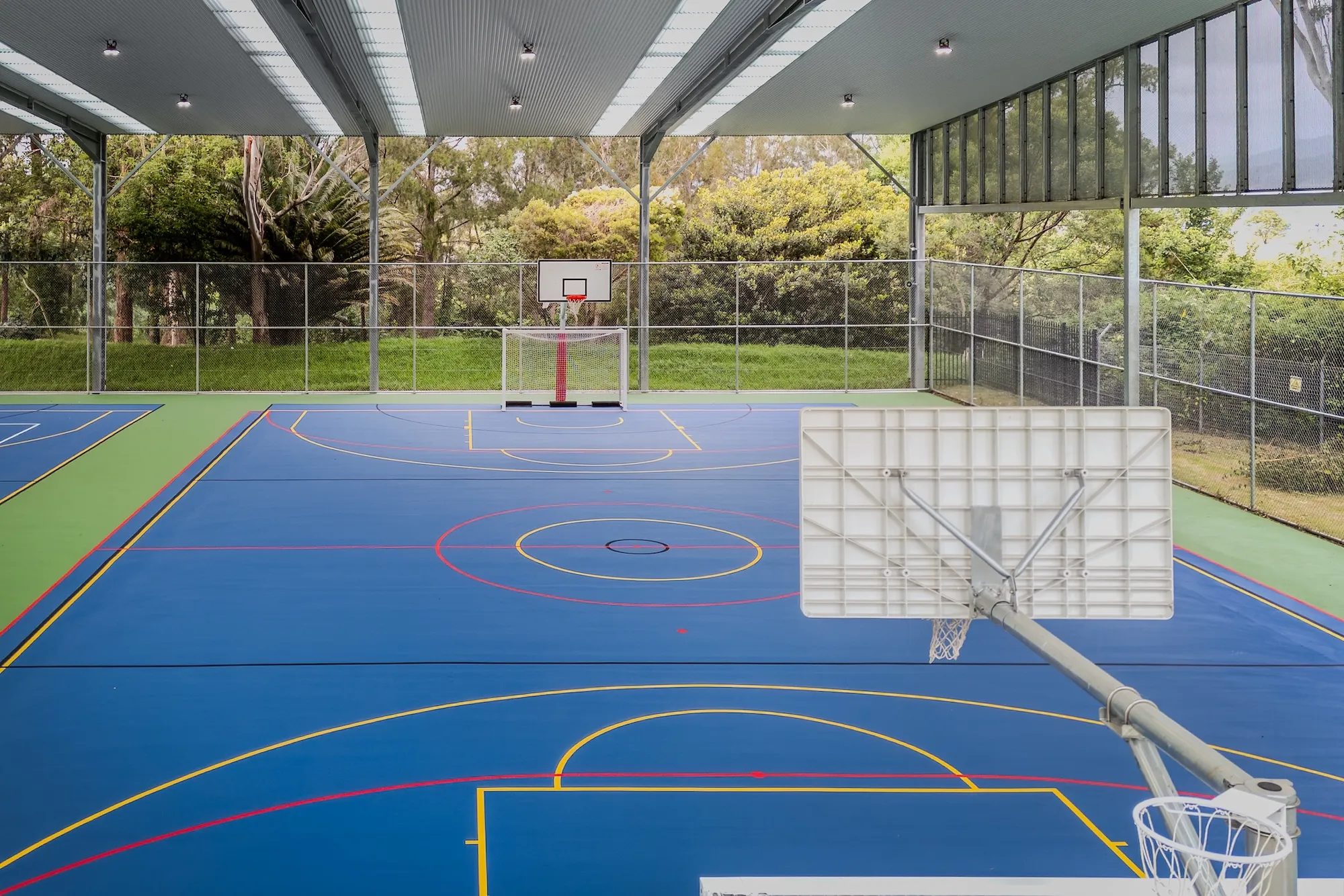 The works encompassed demolition, excavation, and site preparation, followed by structural construction, new court surfacing, and installation of sports equipment. The project also included service relocations, electrical and hydraulic works, landscaping, and temporary access provisions, all completed in line with relevant standards and approvals.