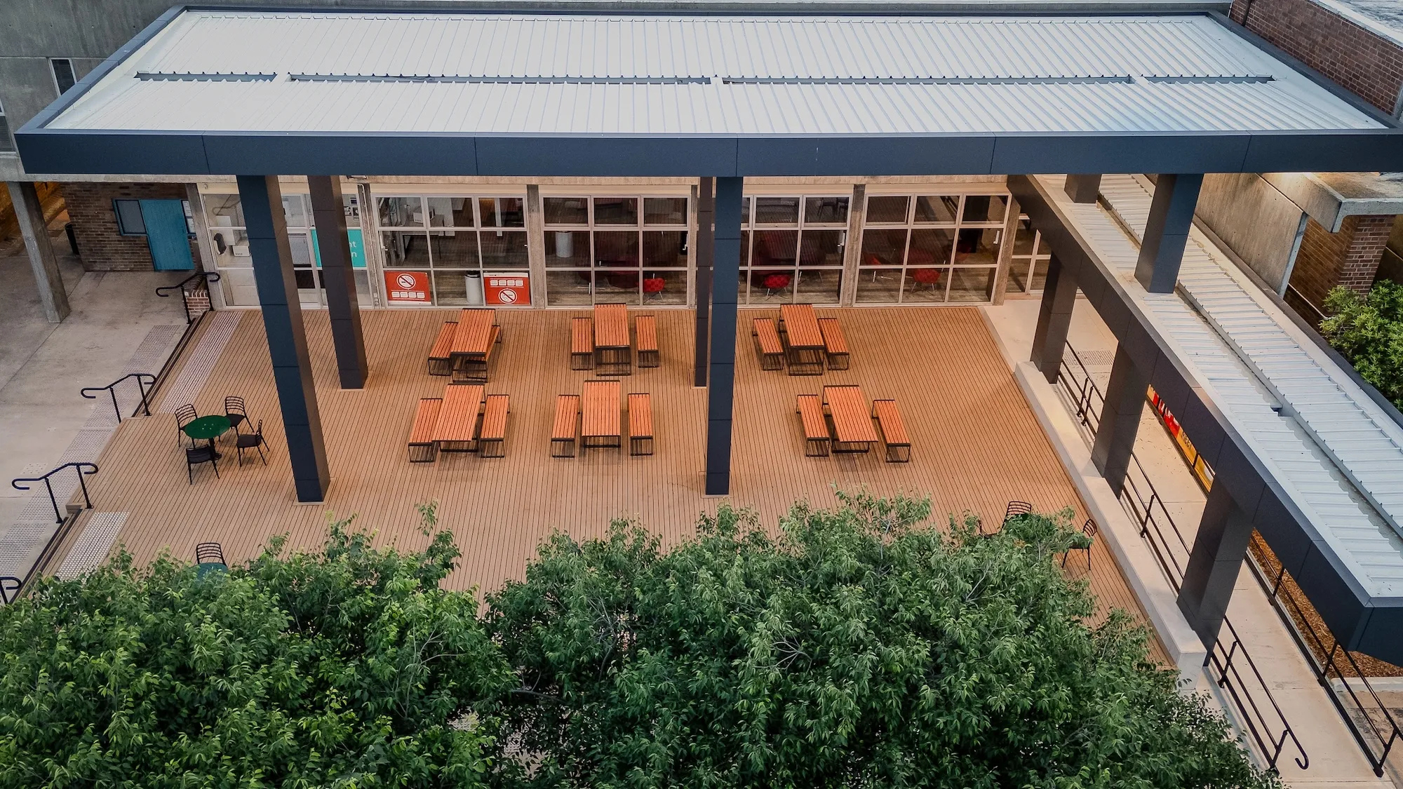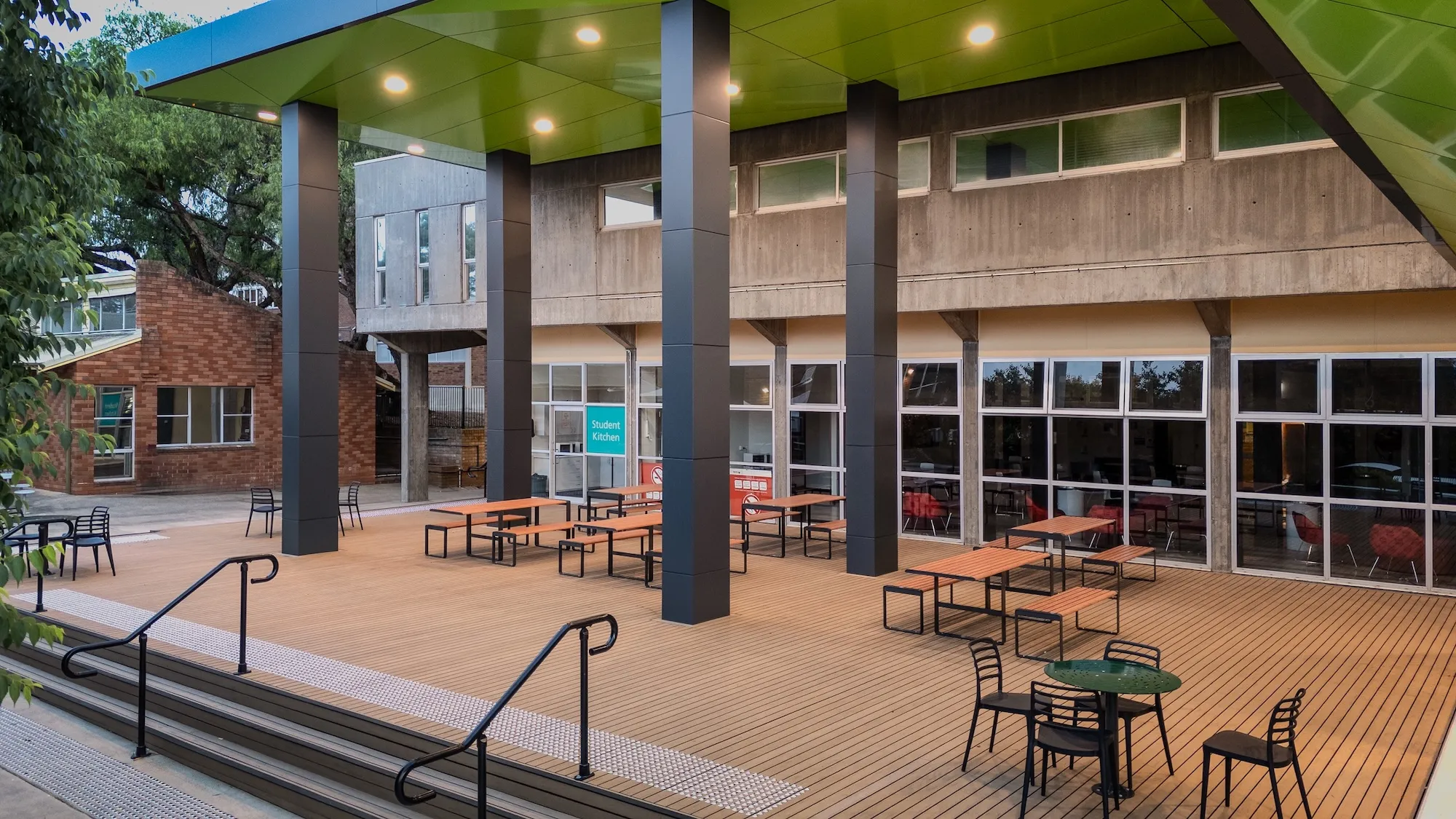 The scope of works included upgrades to customer service areas, the construction of new accessible entryways, the installation of covered outdoor seating areas, and improvements to existing carparks to enhance accessibility and functionality across the campuses.